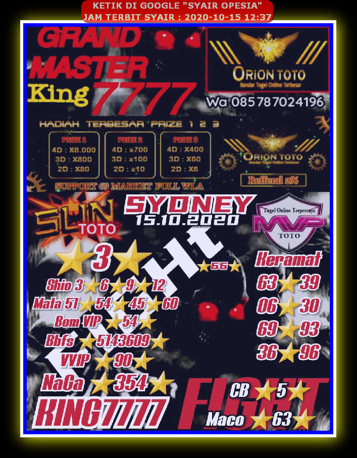 Syair sdy 15 Oktober 2020 KODE SYAIR SGP SYAIR HK SYAIR SYDNEY 2021