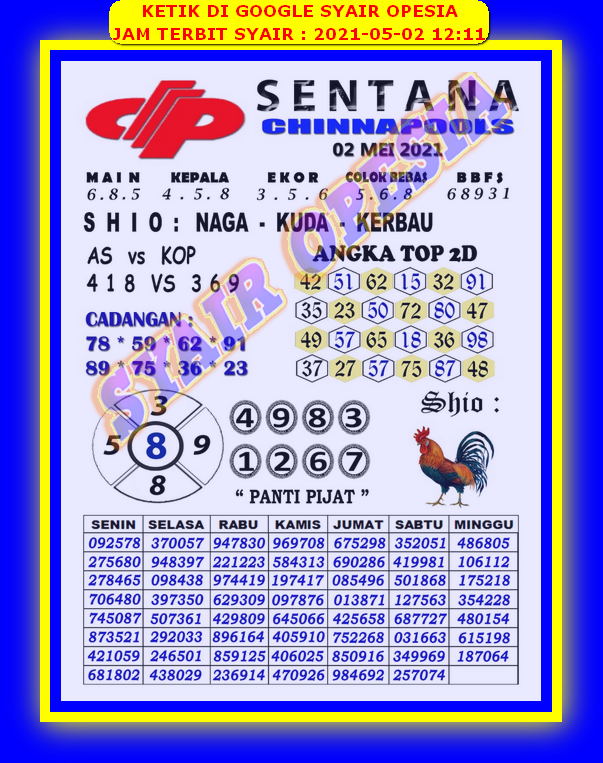 RUMUS KEPALA EKOR SGP JITU||PREDIKSI SINGAPURA 1 MAY 2023||PREDIKSI SGP JITU 1 MAY 2023 #prediksisgphariini #prediksisgp #prediksisingapura #sgphariini #pr. RUMUS AI DR EKOR. (95%) 0 - 359-264 kmt 0178. 1 - 397-046 kmt 1258.. lebih fokus pada ekor result harian sgp. 0 : 123987 1 : 234098 2 : 345109 3 : 456210 4 : 567321 5 : 678432 6 : 789543 7 : 890654. Klu aq bisa mencari rumus untuk menghasilkan angka2 jitu tidak akan memaparkqn di tweter ini ataupun sejenisx. Balas.